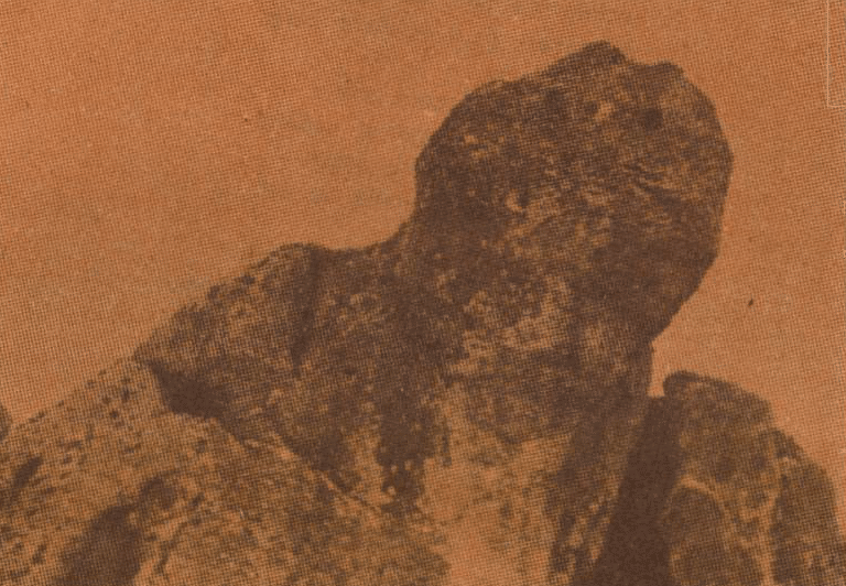 ”Sfinxul Dobrogean”, foto locotenent-colonel Constantin Oprea. Cadrul ilustrează articolul Cheile Dobrogei (Ovidiu Dunăreanu, Almanahul Oștirii 1988 p. 162)